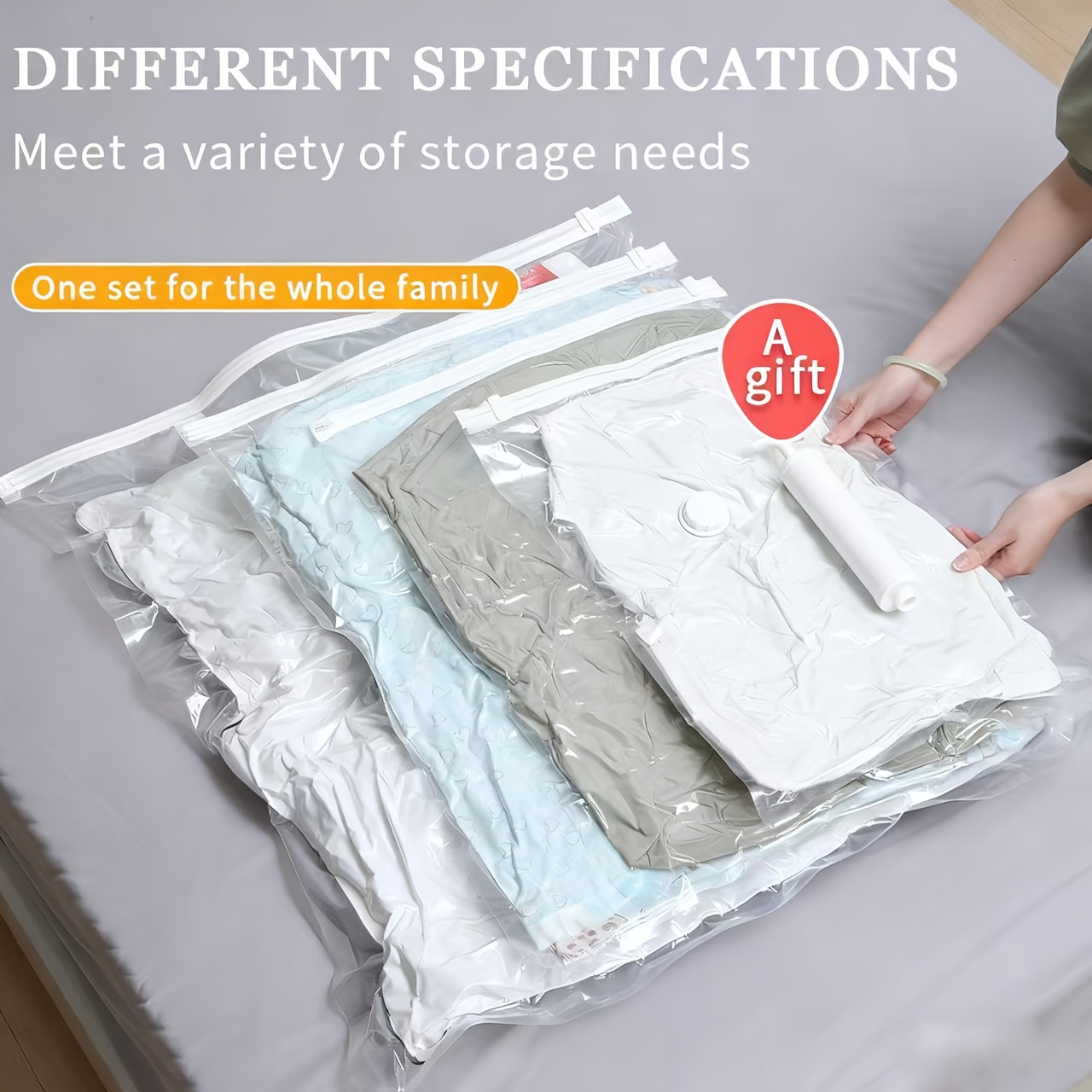Set of 5 Large Vacuum Storage Bags with a Manual Pump - Protects Against Dust And Moisture, Features a Zipper Closure - Ideal for Clothing, Bedding, Dorm Rooms, And Moving, a Must-Have for Relocation. Zippered Storage Bag. Secure Closure